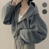 ドロストヘム デニムジップアップパーカー ショート丈 ドロップ [AMELY by La-gemme]ドロストヘム デニムジップアップパーカー ショート丈 ドロップショルダー ブルゾン オーバーサイズ カジュアル おしゃれ レディース トレンド 人気 プチプラ 韓国ファッション 2025新作 【11413-d】【予約販売:15-20日】【送料無料】宅込