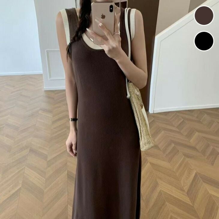 ワンピース ノースリーブ ニットワンピ ロング シンプル [AMELY by La-gemme]ワンピース ノースリーブ ニットワンピ ロング シンプル 大人かわいい キレイめ デート おすすめ おしゃれ レディース トレンド 人気 プチプラ 韓国ファッション 2025春夏新作 【1337-jm】【予約販売:15-20日】【送料無料】メ込2