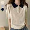 サマーニットトップス ポロ 配色 5分袖 ハートボタン [AMELY by La-gemme]サマーニットトップス ポロ 配色 5分袖 ハートボタン 大人ガーリー 可愛い デート おしゃれ レディース トレンド 人気 プチプラ 韓国ファッション 2025春夏新作 【1503-d】【予約販売:15-20日】【送料無料】メ込2