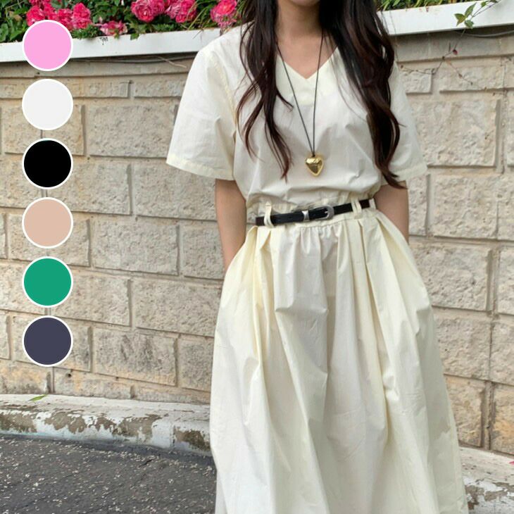Vネック ロングワンピース ベルト付き マキシ丈 半袖 [AMELY by La-gemme]Vネック ロングワンピース ベルト付き マキシ丈 半袖 ワンピ 無地 シンプル カジュアル きれいめ 春夏 おすすめ レディース オシャレ トレンド 人気 プチプラ 韓国ファッション【1639-fx】【予約販売:15-20日】【送料無料】メ込2