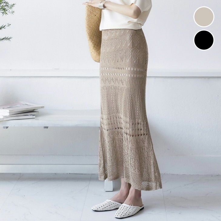 マーメイド ロング スカート タイト サマーニット風 [AMELY by La-gemme]マーメイド ロング スカート タイト サマーニット風 レース マキシ カジュアル きれいめ 総ゴム 春夏 おすすめ レディース オシャレ トレンド 人気 プチプラ 韓国ファッション【2017-jf】【予約販売:15-20日】【送料無料】メ込2