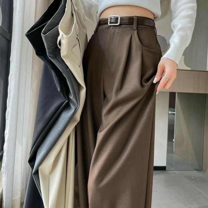 ハイウエスト タッグ ワイドパンツ 楽ちん きれいめ [AMELY by La-gemme]ハイウエスト タッグ ワイドパンツ 楽ちん きれいめ シンプル 無地 ボトムス ワイドレッグ 春夏 カジュアル おすすめ レディース オシャレ トレンド 人気 プチプラ 韓国ファッション【24aw-it102】【予約販売:15-20日】【送料無料】宅込
