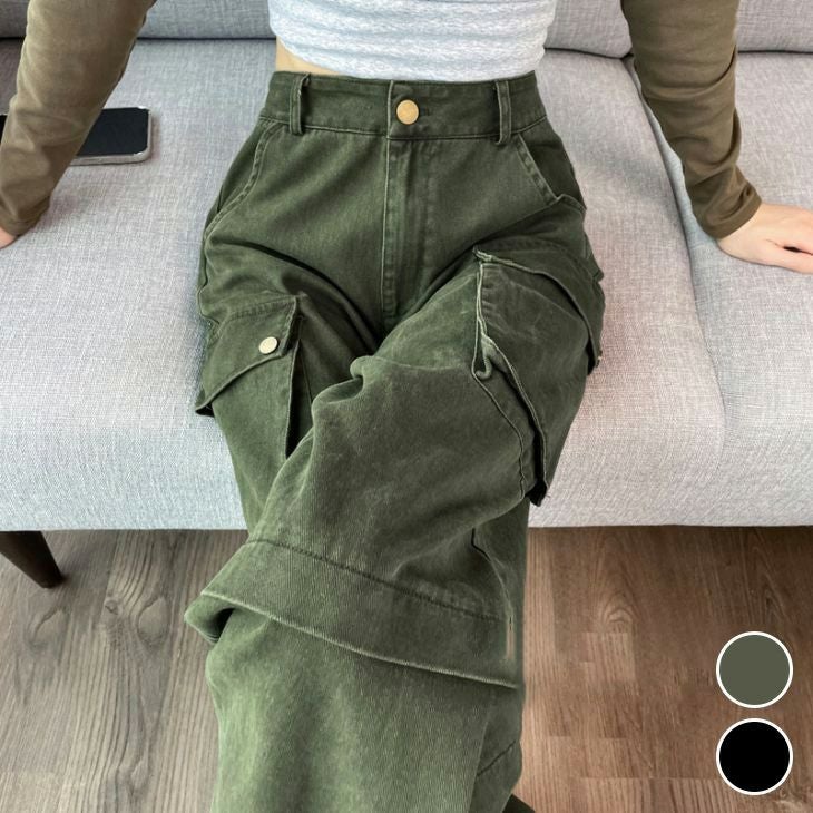 ハイウエスト カーゴパンツ ストレート ワイド シンプル [AMELY by La-gemme]ハイウエスト カーゴパンツ ストレート ワイド シンプル 無地 アメリカンスタイル ボトムス 春夏 おすすめ レディース オシャレ トレンド 人気 プチプラ 韓国ファッション【24aw-it104】【予約販売:15-20日】【送料無料】宅込