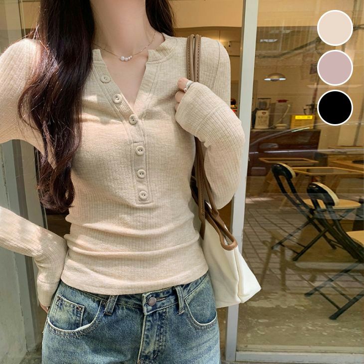 ヘンリーネック ロング Tシャツ ティーシャツ 無地 [AMELY by La-gemme]ヘンリーネック ロング Tシャツ ティーシャツ 無地 シンプルカジュアル きれいめ タイト 長袖 春夏 おすすめ レディース オシャレ トレンド 人気 プチプラ 韓国ファッション【24aw-it106】【予約販売:15-20日】【送料無料】メ込2