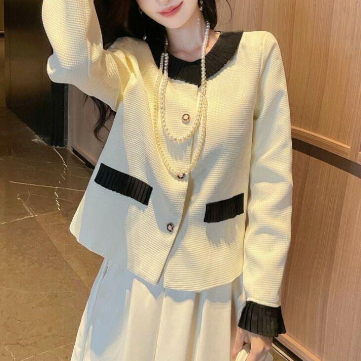 異素材 バイカラー コート ジャケット プリーツ [AMELY by La-gemme]異素材 バイカラー コート ジャケット プリーツ 薄手 羽織り 長袖 袖フレア きれいめ デート 春夏 おすすめ レディース オシャレ トレンド 人気 プチプラ 韓国ファッション【24aw-it110】【予約販売:15-20日】【送料無料】宅込