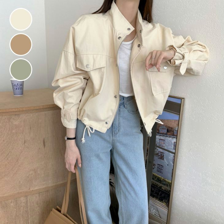 アウター ブルゾン ドロスト ジャンパー クロップド [AMELY by La-gemme]アウター ブルゾン ドロスト ジャンパー クロップド ショート丈 ハイネック袖ベルト ジャケット ゆったり カジュアル 長袖 レディース 韓国ファッション 【24aw-it12】【予約販売:15-20日】【送料無料】宅込