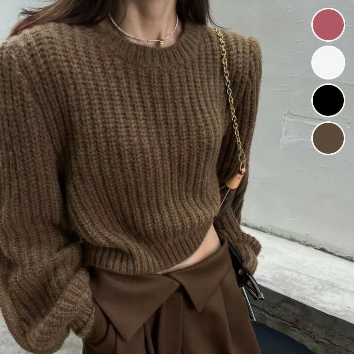 パフスリーブ ショート ニット ショート丈 トップス [AMELY by La-gemme]パフスリーブ ショート ニット ショート丈 トップス シンプル 無地 長袖 カジュアル きれいめ 春夏 おすすめ レディース オシャレ トレンド 人気 プチプラ 韓国ファッション【24aw-it131】【予約販売:15-20日】【送料無料】宅込