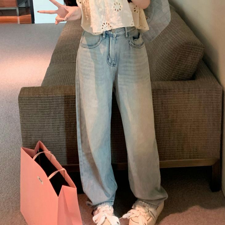 ハイウエスト ストレート ワイド デニム パンツ [AMELY by La-gemme]ハイウエスト ストレート ワイド デニム パンツ ボトムス ワンカラー シンプル ポケットフリンジ加工 春夏 おすすめ レディース オシャレ トレンド 人気 プチプラ 韓国ファッション【24aw-it134】【予約販売:15-20日】【送料無料】メ込3