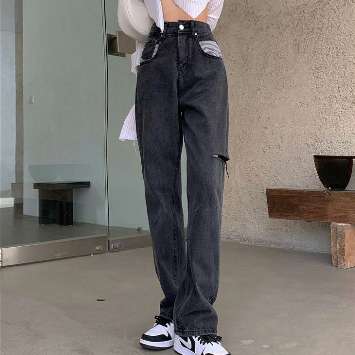 ボトムス ストレートデニム ハイウエスト サイドカット [AMELY by La-gemme]ボトムス ストレートデニム ハイウエスト サイドカット アシンメトリー ゼブラ柄 カジュアル 春夏 おすすめ レディース オシャレ トレンド 人気 プチプラ 韓国ファッション【24aw-it139】【予約販売:15-20日】【送料無料】メ込3
