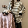 ボーダー トップス トレーナー カジュアル サイドスリット [AMELY by La-gemme]ボーダー トップス トレーナー カジュアル サイドスリット ビッグシルエット ゆったり 長袖 春夏 おすすめ レディース オシャレ トレンド 人気 プチプラ 韓国ファッション【24aw-it145】【予約販売:15-20日】【送料無料】メ込3