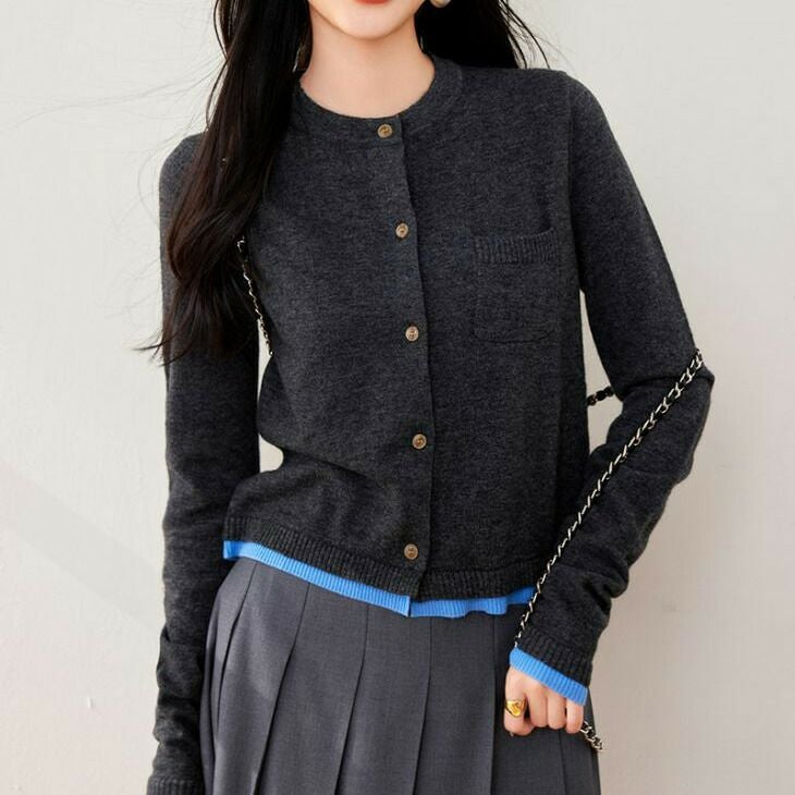 カーディガン ニット 羽織り 配色 オフィス [AMELY by La-gemme]カーディガン ニット 羽織り 配色 オフィス トップス ポケット クルーネック ボタン 長袖 春夏 おすすめ レディース オシャレ トレンド 人気 プチプラ 韓国ファッション【24aw-it147】【予約販売:15-20日】【送料無料】メ込3
