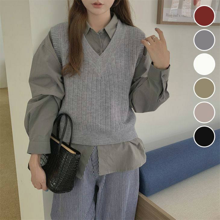 Vネック ニット ベスト ショート丈 シンプル [AMELY by La-gemme]Vネック ニット ベスト ショート丈 シンプル カジュアル ガーリー 無地 スクール レトロ カレッジ 春夏 おすすめ レディース オシャレ トレンド 人気 プチプラ 韓国ファッション【24aw-it177】【予約販売:15-20日】【送料無料】メ込2