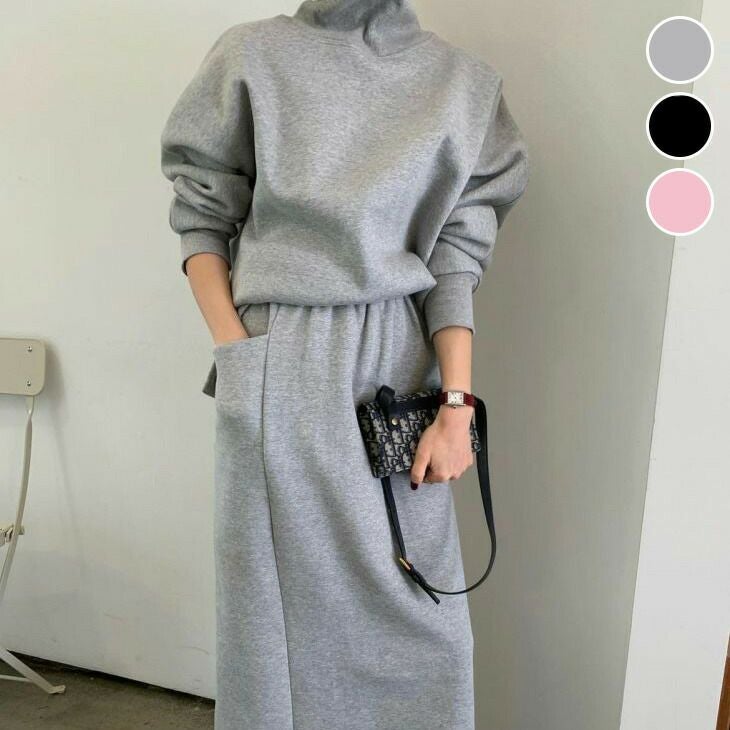 ハイネック スウェット セットアップ サイドスリット トップス [AMELY by La-gemme]ハイネック スウェット セットアップ サイドスリット トップス バックスリット タイトスカート 春夏 おすすめ レディース オシャレ トレンド 人気 プチプラ 韓国ファッション【24aw-it185】【予約販売:15-20日】【送料無料】宅込