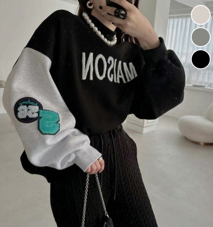 トレーナー トップス ハイネック ロゴ ワッペン [AMELY by La-gemme]トレーナー トップス ハイネック ロゴ ワッペン 袖リブ ゆったり プルオーバー カジュアル 長袖 春夏 おすすめ レディース オシャレ トレンド 人気 プチプラ 韓国ファッション【24aw-it201】【予約販売:15-20日】【送料無料】メ込2
