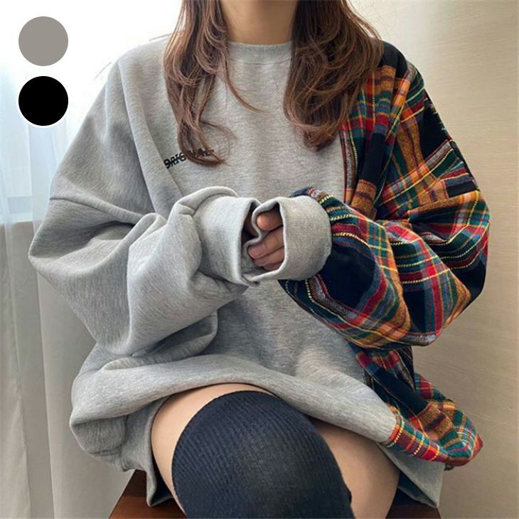 トレーナー 異素材 ドッキング トップス クルーネック [AMELY by La-gemme]トレーナー 異素材 ドッキング トップス クルーネック 大人カジュアル 袖リブ オーバーサイズ 長袖 春夏 おすすめ レディース オシャレ トレンド 人気 プチプラ 韓国ファッション【24aw-it205】【予約販売:15-20日】【送料無料】メ込2