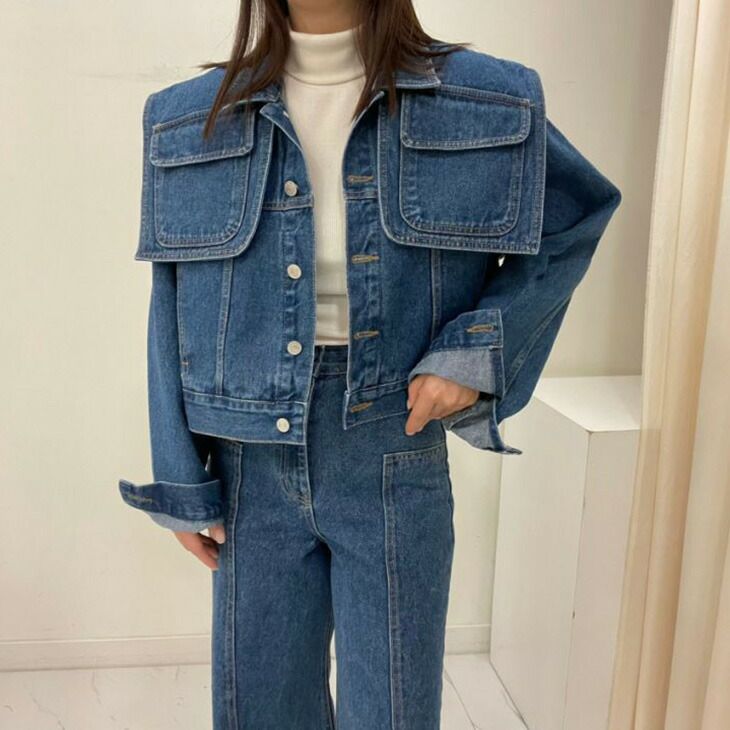 デニムジャケット セーラーカラー ビッグカラー レディース [AMELY by La-gemme]デニムジャケット セーラーカラー ビッグカラー レディース ライトアウター 個性的 Gジャン 長袖 春夏 おすすめ レディース オシャレ トレンド 人気 プチプラ 韓国ファッション【24aw-it207】【予約販売:15-20日】【送料無料】宅込