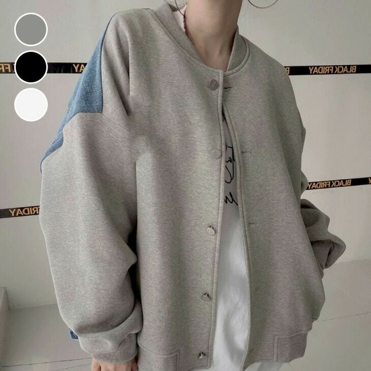 スウェット アウター 異素材ドッキング カジュアル [AMELY by La-gemme]スウェット アウター 異素材ドッキング カジュアル オーバーシルエット 春夏 おすすめ レディース オシャレ トレンド 人気 プチプラ 韓国ファッション【24aw-it210】【予約販売:15-20日】【送料無料】宅込