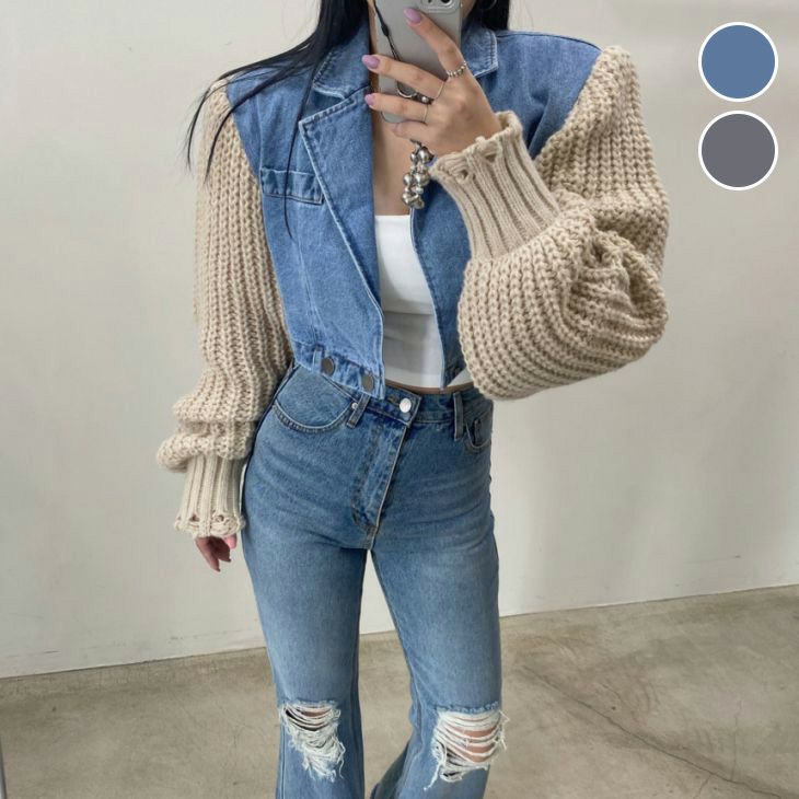 ニット ジャケット 異素材 ドッキング アウター [AMELY by La-gemme]ニット ジャケット 異素材 ドッキング アウター デニムジャケット カジュアル オーバーサイズ 春夏 おすすめ レディース オシャレ トレンド 人気 プチプラ 韓国ファッション【24aw-it212】【予約販売:15-20日】【送料無料】宅込
