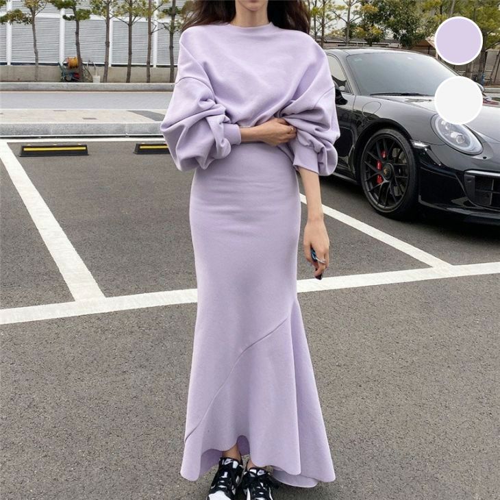 セットアップ スカートセット プルオーバー トレーナー [AMELY by La-gemme]セットアップ スカートセット プルオーバー トレーナー ショート丈 マーメイド ロングスカート 春夏 おすすめ レディース オシャレ トレンド 人気 プチプラ 韓国ファッション【24aw-it214】【予約販売:15-20日】【送料無料】宅込