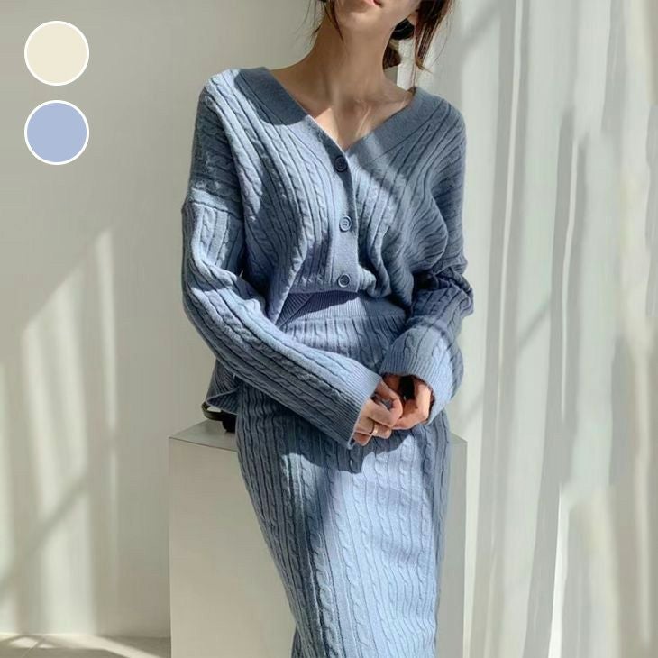 カーディガン ニット セーター セットアップ ケーブル [AMELY by La-gemme]カーディガン ニット セーター セットアップ ケーブル ニット キレイめ お洒落 シンプル 上品 春夏 おすすめ レディース オシャレ トレンド 人気 プチプラ 韓国ファッション【24aw-it223】【予約販売:15-20日】【送料無料】宅込