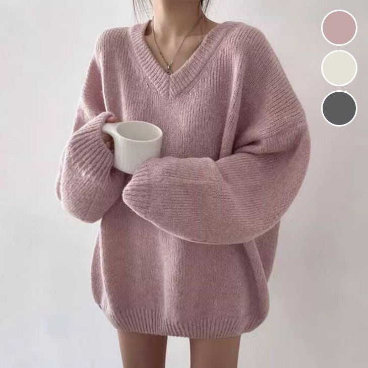 ニット オーバーサイズ Vネック プルオーバーニット [AMELY by La-gemme]ニット オーバーサイズ Vネック プルオーバーニット ドロップショルダー ボリューム袖 ゆったり 春夏 おすすめ レディース オシャレ トレンド 人気 プチプラ 韓国ファッション【24aw-it229】【予約販売:15-20日】【送料無料】宅込