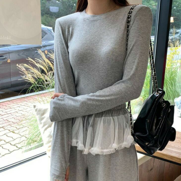 セットアップ レースデザイン ラウンドネック スウェット [AMELY by La-gemme]セットアップ レースデザイン ラウンドネック スウェット カジュアルパンツ トップス シンプル フリル 春夏 おすすめ レディース オシャレ トレンド 人気 プチプラ 韓国ファッション【24aw-it235】【予約販売:15-20日】【送料無料】宅込