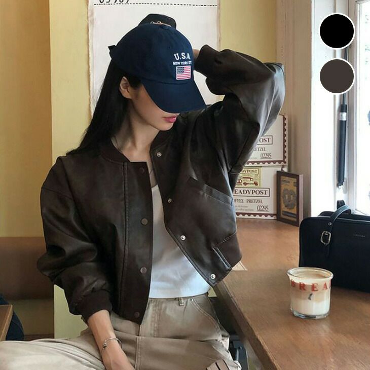 レザー風 クロップド丈 ブルゾン PU 長袖 [AMELY by La-gemme]レザー風 クロップド丈 ブルゾン PU 長袖 カジュアル ジャケット アウター ストリート オーバーサイズ 春夏 おすすめ レディース オシャレ トレンド 人気 プチプラ 韓国ファッション【24aw-it243】【予約販売:15-20日】【送料無料】宅込