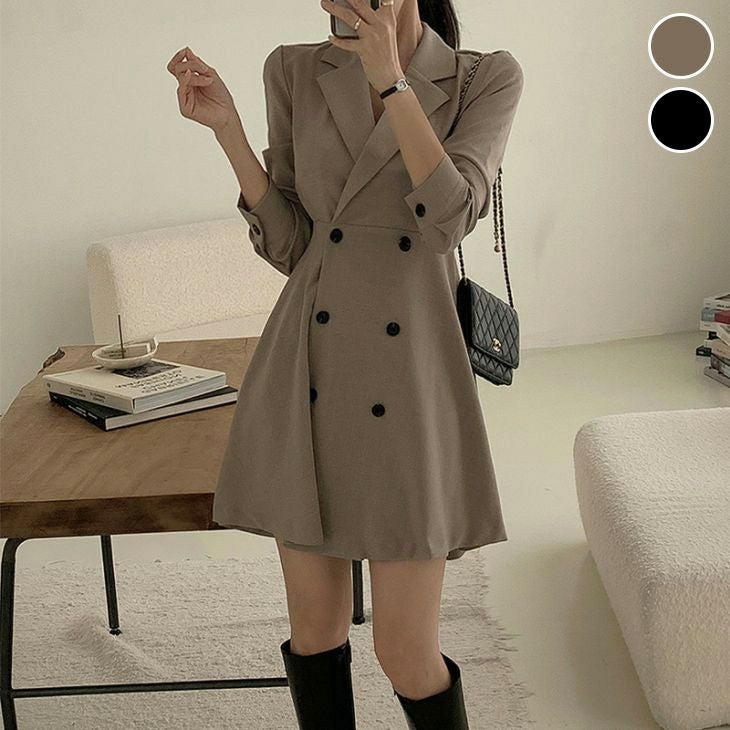 テーラードジャケット風 ワンピ ダブルボタン ミニワンピ [AMELY by La-gemme]テーラードジャケット風 ワンピ ダブルボタン ミニワンピ ワンピース 長袖 きれいめ デート 二次会 春夏 おすすめ レディース オシャレ トレンド 人気 プチプラ 韓国ファッション【24aw-it248】【予約販売:15-20日】【送料無料】宅込