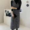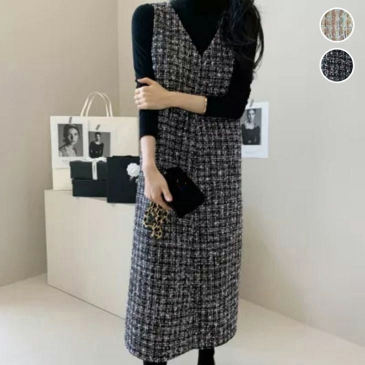 ワンピース ツイード風 チェック 深Vネック ロング丈 [AMELY by La-gemme]ワンピース ツイード風 チェック 深Vネック ロング丈 スリット 前後2way タイト きれいめ 春夏 おすすめ レディース オシャレ トレンド 人気 プチプラ 韓国ファッション【24aw-it64】【予約販売:15-20日】【送料無料】メ込3