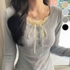 トップス レイヤード風 カットソー プルオーバー ロンT [AMELY by La-gemme]トップス レイヤード風 カットソー プルオーバー ロンT リボン フリル フェミニン 長袖 おすすめ オシャレ トレンド 人気 プチプラ レディース 韓国ファッション【24aw-it85】【予約販売:15-20日】【送料無料】メ込2