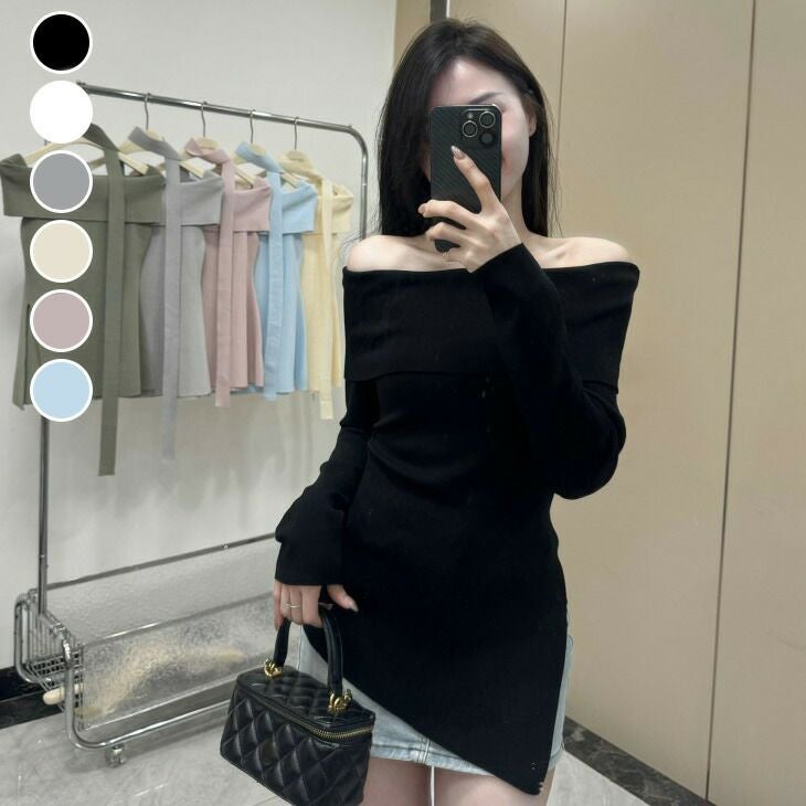 オフショルダー トップス ニット 長袖 ガーリー [AMELY by La-gemme]オフショルダー トップス ニット 長袖 ガーリー キレイめ 大人かわいい デート シンプル おすすめ おしゃれ レディース トレンド 人気 プチプラ 韓国ファッション 2025春夏新作【306-jm】【予約販売:15-20日】【送料無料】メ込2