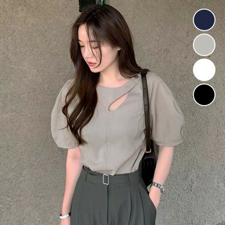 パフスリーブ カットワーク ラウンドネック ブラウス [AMELY by La-gemme]パフスリーブ カットワーク ラウンドネック ブラウス コクーンスリーブ カットソー 半袖 きれいめ 夏 おすすめ レディース オシャレ トレンド 人気 プチプラ 韓国ファッション 【3181-fx3】【予約販売:15-20日】【送料無料】メ込2