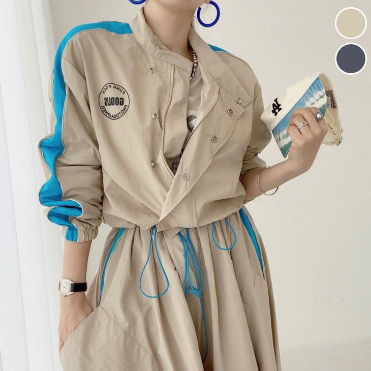 セットアップ ロングスカート ウインドブレーカー バックロゴ セットアップ ロングスカート ウインドブレーカー バックロゴ 大人カジュアル 2点セット おすすめ おしゃれ レディース トレンド 人気 プチプラ 韓国ファッション 2025春夏新作【3903-fx】【予約販売:15-20日】【送料無料】宅込
