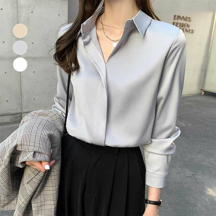 シンプル Vネック シャツ ブラウス きれいめ [AMELY by La-gemme]シンプル Vネック シャツ ブラウス きれいめ オフィス 通勤 レイヤード 無地 インナー 長袖 トップス すすめ レディース オシャレ トレンド 人気 プチプラ 韓国ファッション【5192-gt】【予約販売:15-20日】【送料無料】メ込2