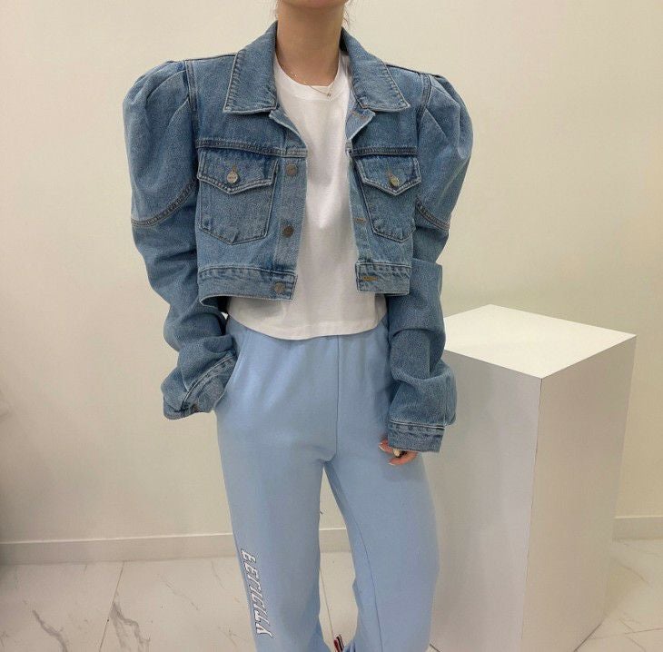 デニム ショート丈 ジャケット パワーショルダー [AMELY by La-gemme]デニム ショート丈 ジャケット パワーショルダー アウター カジュアル ガーリー デート 羽織り おすすめ おしゃれ レディース トレンド 人気 プチプラ 韓国ファッション 2025春夏新作【802-br】【予約販売:15-20日】【送料無料】宅込