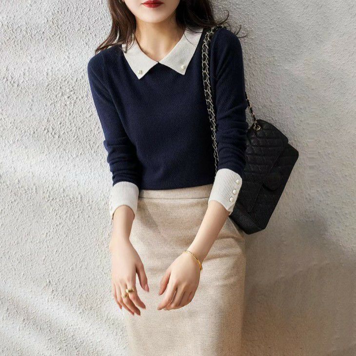 バイカラー 恵襟付き ニット トップス 長袖 [AMELY by La-gemme]バイカラー 恵襟付き ニット トップス 長袖 シンプル オフィス きれいめ デート ガーリー 春 おすすめ レディース オシャレ トレンド 人気 プチプラ 韓国ファッション【81732-gt】【予約販売:15-20日】【送料無料】メ込2