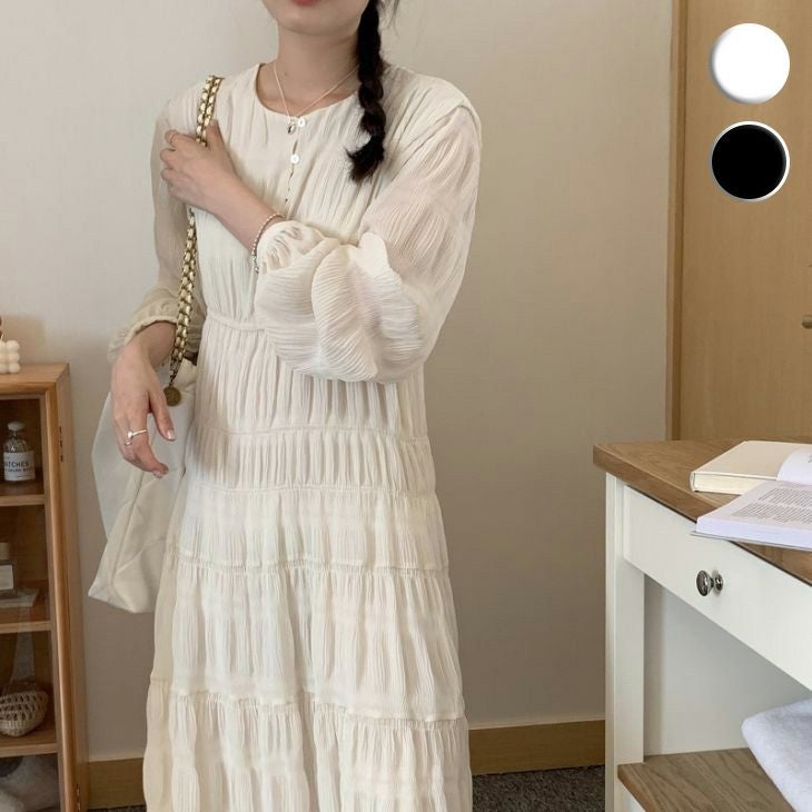 ティアード ワンピース ぽわん袖 ランタンスリーブ シアー [AMELY by La-gemme]ティアード ワンピース ぽわん袖 ランタンスリーブ シアー 透け感 長袖 ロング丈 カジュアル ギャザー おすすめ レディース オシャレ トレンド 人気 プチプラ 韓国ファッション 【9559-k】【予約販売:15-20日】【送料無料】メ込4