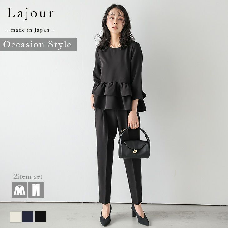 他の画像を見る Lajour made in Japan 日本製セットアップ パンツ 【秋冬半額SALE対象】 Lajour made in Japan 日本製セットアップ ティアード フリル フォーマル セレモニー オケージョン ラウンドネック 七分丈 テーパードパンツ レディース おすすめ ラジュール 2025春夏新作【laj-se029】【即納:1-5営業日】【送料無料】60込 通常 ¥ 15,960 のところ ¥ 7,980 税込 詳細を見る お気に入りに登録する