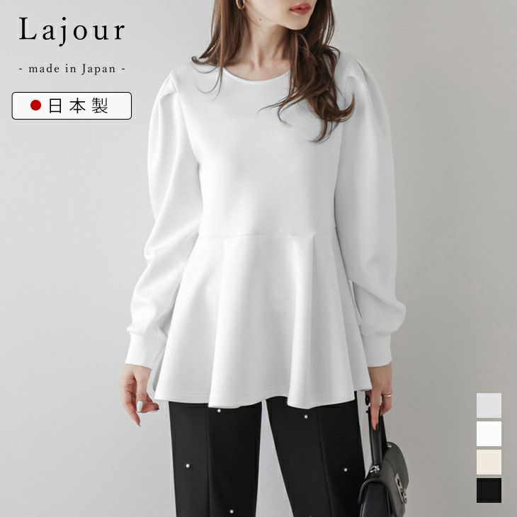 日本製 ペプラムトップス 上品 キレイめ 【秋半額SALE対象】 Lajour made in Japan 日本製 ペプラムトップス タックフレア バックボタン キレイめ 上品 パフスリーブ ダンボールニット 長袖 レディース おすすめ フリーサイズ ラジュール 2025春夏新作【laj-tp027】【即納:1-5営業日】【送料無料】60込