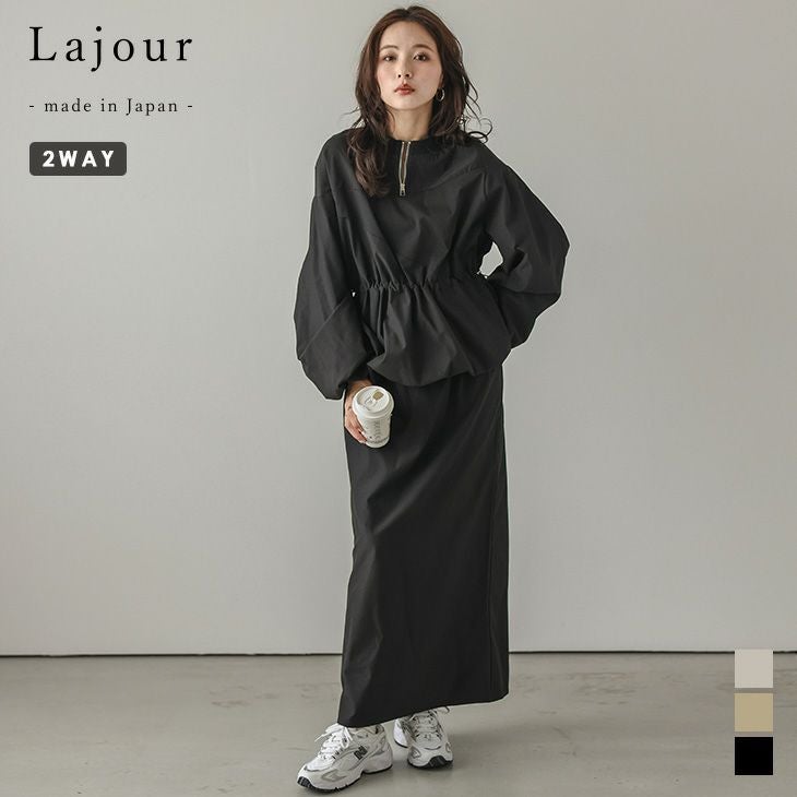 Lajour made in Japan 日本製 【クーポン利用で35%OFF】[Lajour mada in Japan] 日本製 セットアップ 前後2way アシンメトリー ハーフジップ ロングスカート バルーンスリーブ レディース おすすめ おしゃれ フリーサイズ 2025春夏新作 【laj-se067】【即納:1-5営業日】【送料無料】60込