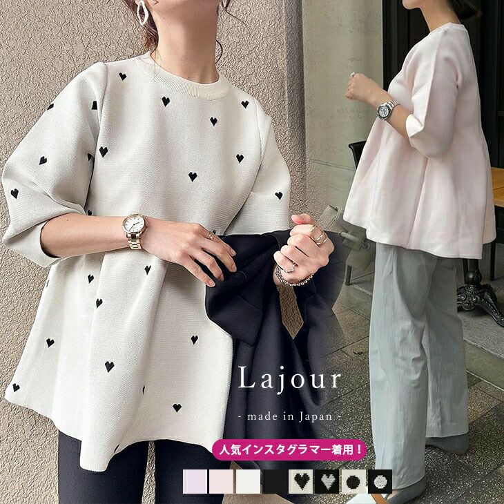 他の画像を見る Lajour made in Japan ラジュール ペプラム トップス Lajour made in Japan ラジュール トップス ニット ペプラム プルオーバー ハート ドット シーズンレス 着映え ラウンドネック レディース おすすめ フリーサイズ 半袖 2025春夏新作【laj-021】【即納:1-5営業日】【送料無料】60込 通常 ¥ 9,980 のところ ¥ 9,980 税込 詳細を見る お気に入りに登録する