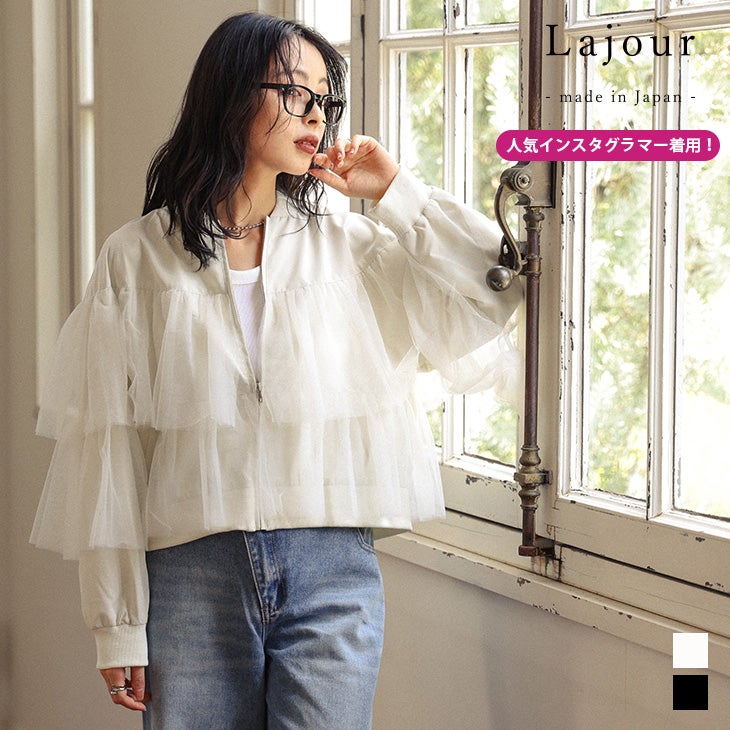 他の画像を見る ブルゾン クロップド丈 異素材切替え アウター 日本製 [Lajour mada in Japan] 日本製 チュール ラッフルフリル ブルゾン クロップド丈 異素材切替え アウター レディース おすすめ ラジュール 2025春夏新作【laj-tp075】【即納:1-5営業日】【送料無料】宅込 通常 ¥ 7,980 のところ ¥ 7,980 税込 詳細を見る お気に入りに登録する