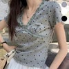 Vネック ドット クロス フリル Tシャツ [AMELY by La-gemme]Vネック ドット クロス フリル Tシャツ トップス 裾 袖 メロウ 半袖 カジュアル ガーリー きれいめ 春夏 おすすめ レディース オシャレ トレンド 人気 プチプラ 韓国ファッション 【a0168-d】【予約販売:15-20日】【送料無料】メ込2