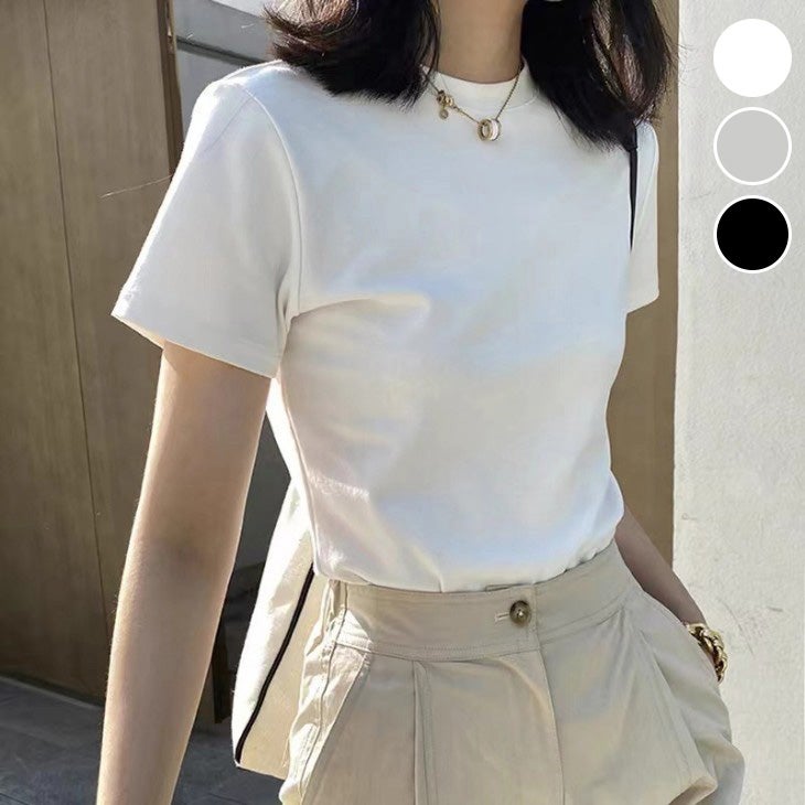 ベーシック 半袖 Tシャツ クルーネック コンパクト [AMELY by La-gemme]ベーシック 半袖 Tシャツ クルーネック コンパクト フィット トップス 伸縮性 シンプル 無地 インナー使い カジュアルトップス レディース 【a26-wp0413】【予約販売:15-20日】【送料無料】メ込2