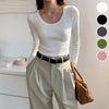深めUネック 長袖 ロンT フィットシルエット Tシャツ [AMELY by La-gemme]深めUネック 長袖 ロンT フィットシルエット Tシャツ コンパクト トップス インナー使い 伸縮性 きれいめカジュアル レディース 【a26-wp2001】【予約販売:15-20日】【送料無料】メ込2
