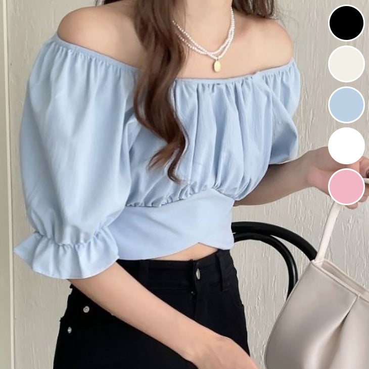 パフスリーブ バックリボン ブラウス シャツ フリル [AMELY by La-gemme]パフスリーブ バックリボン ブラウス シャツ フリル 2way オフショル ガーリー デート かわいい 春夏 おすすめ レディース オシャレ トレンド 人気 プチプラ 韓国ファッション 【a4219-gt】【予約販売:15-20日】【送料無料】メ込2