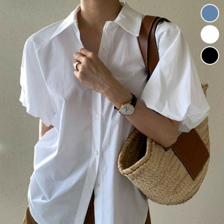 バルーンスリーブ サイドスリット シャツ ブラウス トップス [AMELY by La-gemme]バルーンスリーブ サイドスリット シャツ ブラウス トップスきれいめ ガーリー ゆったり シンプル 夏 おすすめ レディース オシャレ トレンド 人気 プチプラ 韓国ファッション 【a741-xjm】【予約販売:15-20日】【送料無料】メ込2