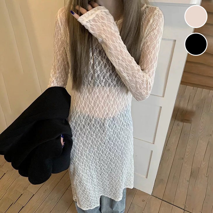 総レース シアー ワンピース ロング丈 長袖 [AMELY by La-gemme]総レース シアー ワンピース ロング丈 長袖 透け感 レイヤード 重ね着 抜け感 カジュアル 韓国ファッション レディース 【a8253-d】【予約販売:15-20日】【送料無料】メ込2