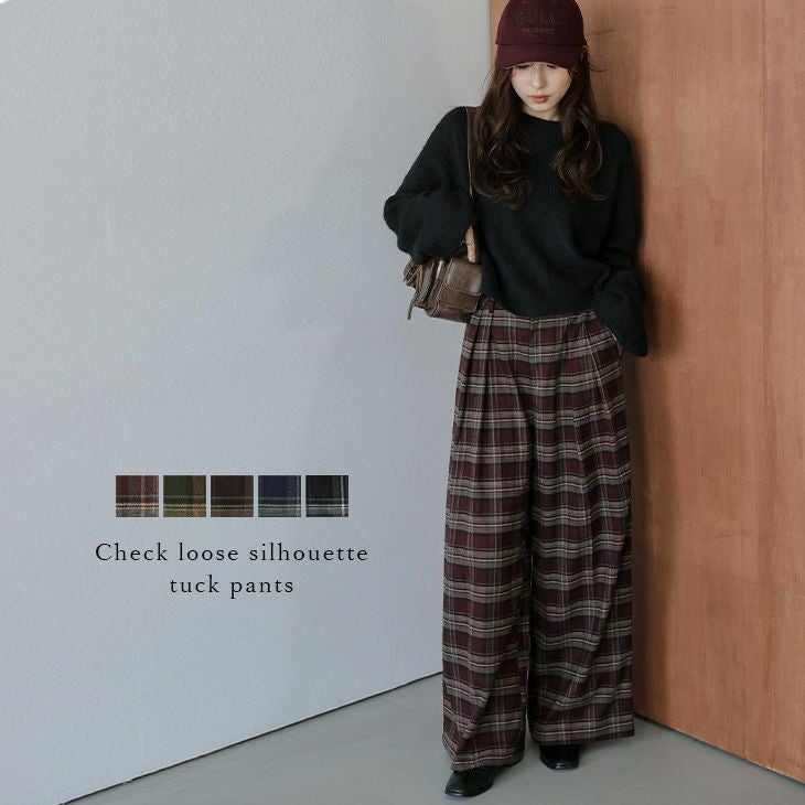 パンツ タック チェック ルーズ ワイド 【秋冬半額SALE対象】 [AMELY by La-gemme]パンツ タック チェック ルーズ ワイド ヴィンテージ レトロ こなれ感 カジュアル 体型カバー レディース おすすめ おしゃれ メール便 2025秋冬新作【abtaw25-1704】【即納:1-5営業日】【送料無料】メ込2