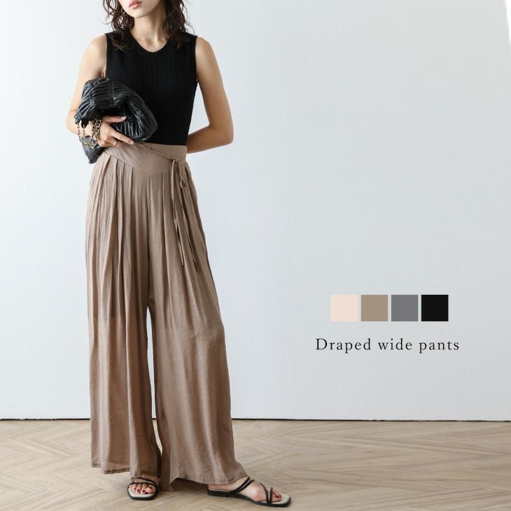 ワイドパンツ ドレープ リボン リラクシー リゾート [AMELY by La-gemme]ワイドパンツ ドレープ リボン リラクシー リゾート 楽ちん こなれ感 ボトムス レディース おすすめ おしゃれ 2025春夏新作 【abtss24-498】【即納:1-5営業日】【送料無料】メ込2